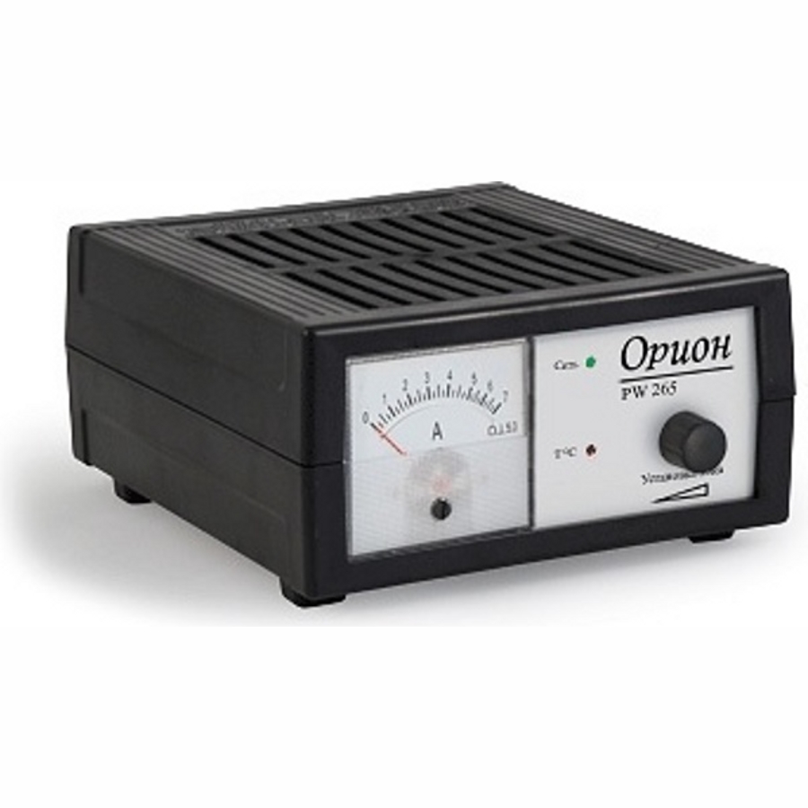 Зарядное устройство PW-265 оснащено стрелочным индикатором силы выходного тока и предназначено для заряда 12 В мотоциклетных и автомобильных аккумуляторных батарей любой емкости в автоматическом режиме (автоматическое уменьшение тока в конце заряда). Диапазон рабочих температур -10...+40 С. Тип амперметра стрелочный. Электронная схема защиты от перегрева. Диапазон регулировки выходного тока 0.4-6 А.