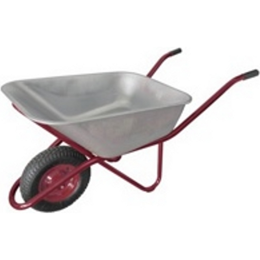 Тачка садово-строительная. Оцинкованный кузов. Металлический обод колёс на подшипниках. Объем -100 л. Грузоподъемность - до 180 кг.