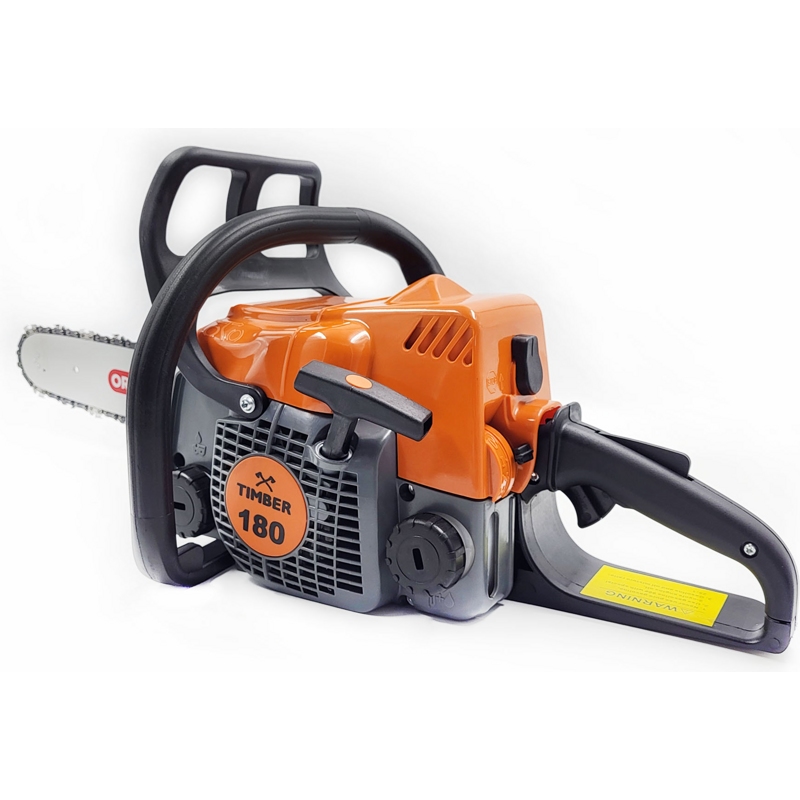 Бензопила TIMBER 180 – легкая, но мощная бензопила для работ на участке. Идеальный выбор для распиловки дров, обрезки веток, строительных работ и других задач!