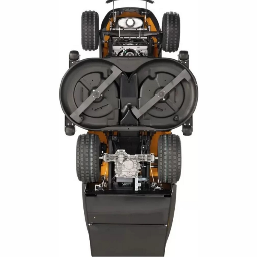 STIGA ESTATE 9122 W оснащен семью уровнями регулировки высоты кошения (от 30 до 90 мм), что позволяет адаптировать стрижку под разные условия газона. Большие колеса (15x6.00-6 передние и 18x8.50-8 задние) обеспечивают отличную проходимость и устойчивость.