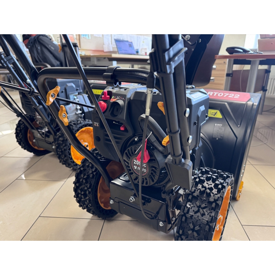 Самоходный бензиновый снегоуборщик RATO RT0722 отличное решение для загородного дома, небольшой придомовой территории общественного пользования, парковок, дорожек небольших парков и любых других открытых территорий в зимнее время. Двигатель снегоуборщика объемом 209 сс рассчитан на уверенную работу при температуре до -30 градусов. Ширина захвата ковша снегоуборщика 56 см и высота ковша 52 см обеспечивают достаточно оперативную уборку снега при непрерывной работе до 4,5 часов. Дальность выброса снега до 12 метров позволяет наводить порядок даже после длительных и обильных снегопадов.