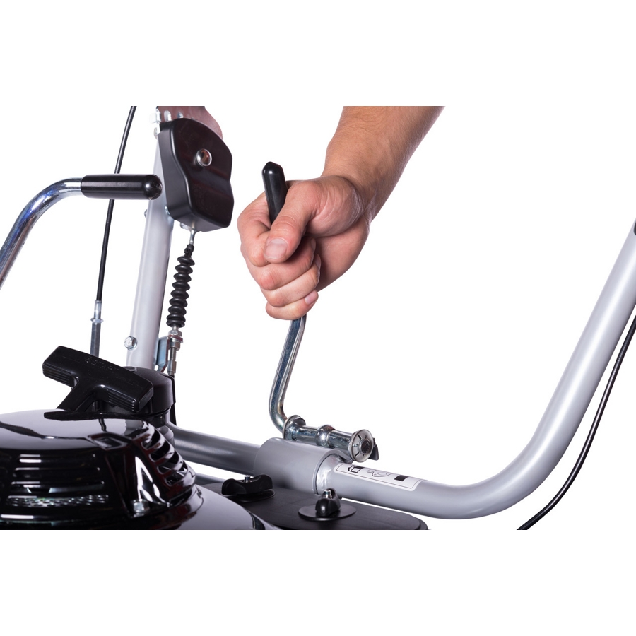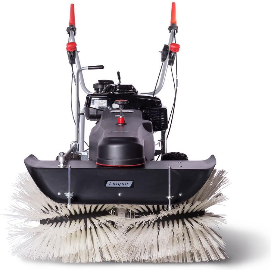 В комплекте нейлоновая 12-элементная щетка диаметром 40 см. За счет частой щетины справляется как с листвой так и со снегом, при этом не повреждая поверхность (например, плитку). Малый радиус разворота. Усиленный редуктор хода и щетки. Пониженная вибрация рукояток. Повышенный ресурс механизмов. Бесступенчатая регулировка высоты щетки над поверхностью. Антикоррозийное покрытие корпуса. Рукоятки регулируются по высоте и складывается для компактного хранения. Щетка поворачивается в одно из 5-ти положений. Рычаг регулировки угла поворота щетки выведен к оператору. Размер колес: 41x17 см. Операционные рычаги изготавливаются из прочной стали. Пневматическое опорное колесо