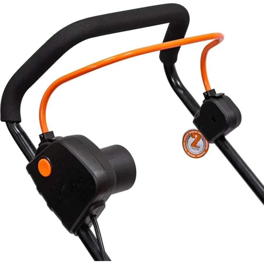 Регулировка угла наклона рукоятки позволяет подстроить газонокосилку под рост оператора.