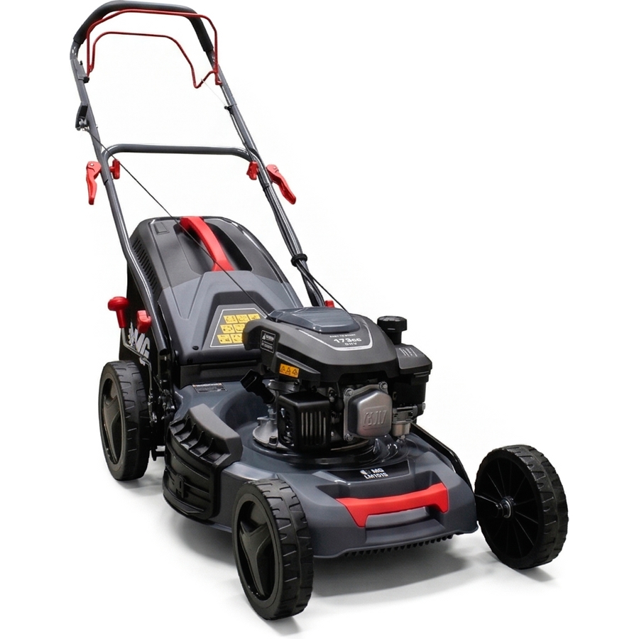 Мощная самоходная модель с двигателем Ducar DV170 173 см? (3 кВт) и шириной кошения 51 см. Подходит для участков до 15 соток. Оснащена системой 4-в-1, увеличенным травосборником 60 л и крупными колесами для лучшей проходимости.