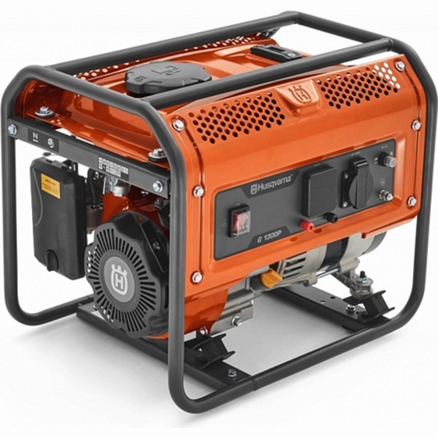Husqvarna Engine, 98.5 см3, ном. 0.8 кВт, макс. 1 кВт, 50 Гц, 230 В, 28 кг, 6 л бак, ручной стартер, 1 фаза, 2 розетки тип F, автоматический выключатель по току, защита от запуска без масла, индикатор уровня топлива, цифровое табло с индикацией напряжения, частоты тока и времени наработки